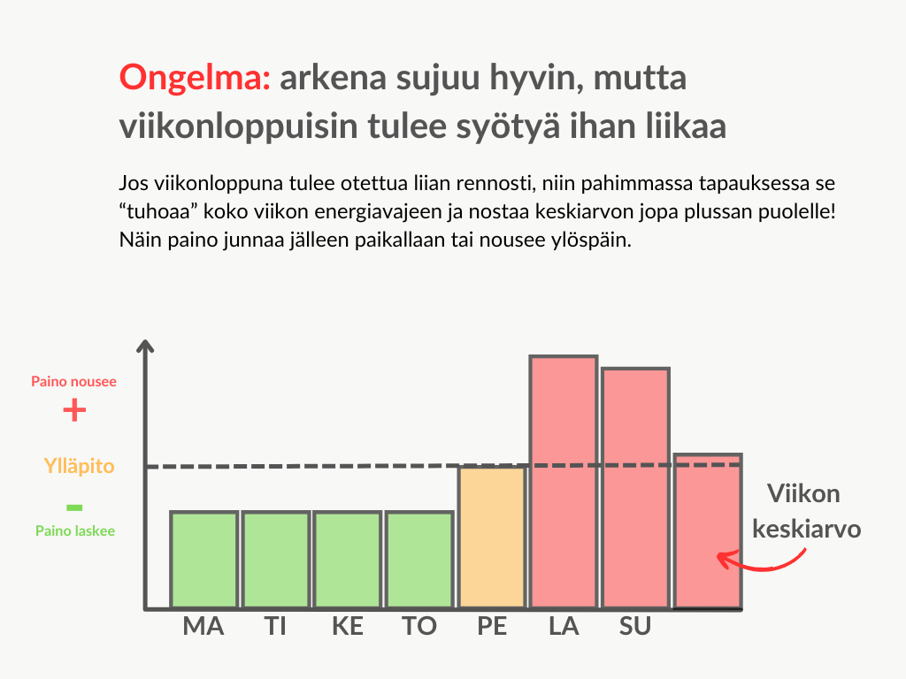 Tai ehkä arki sujuu aina hyvin, mutta sitten viikonloppuna tulee syötyä ihan liikaa (tämä on todella yleistä!).